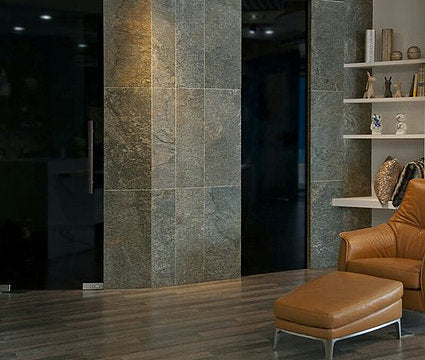 This stunning Argento Slate Veneer sheet has a 100% natural stone face specially manufactured with a fibre glass and resin backing to make it flexible, light weight and easy to install.