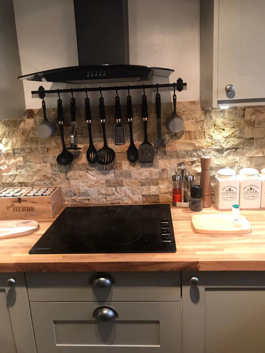 Beautiful Scabos travertine split face mosaic sheets are perfect for a feature wall in a living room, kitchen or bathroom. This material provides a wonderful textured natural stone finish. This material can also be used as cladding on external walls.