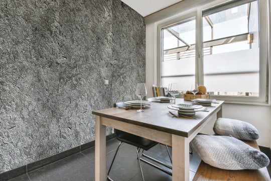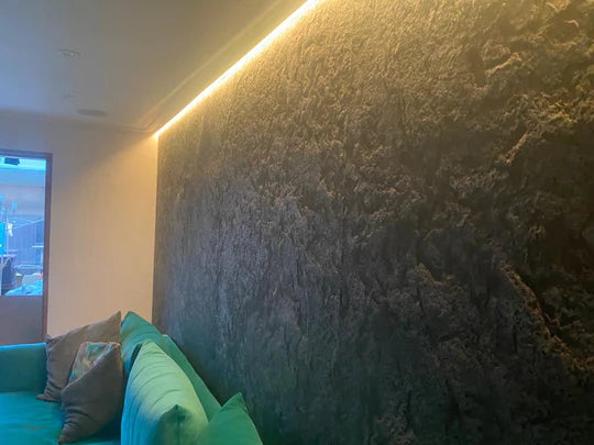This stunning Matrix Slate Veneer sheet has a 100% natural stone face specially manufactured with a fibre glass and resin backing to make it flexible, light weight and easy to install.