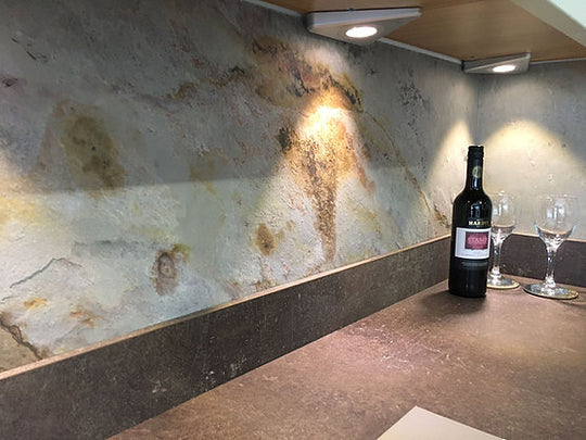 This stunning Bianco Slate Veneer sheet has a 100% natural stone face specially manufactured with a fibre glass and resin backing to make it flexible, light weight and easy to install.