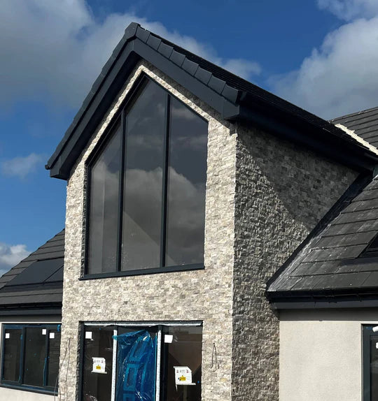 Silver travertine split face cladding comes in a 30.5 x 30.5cm sheet size, 15mm thickness and each individual piece of travertine is 5 x 10cm in size.