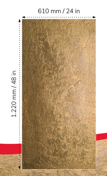 This stunning Gold metal veneer sheet has a golden colour metal finish made from crushed metal pigment and resin. Manufactured with a fibre glass and resin backing to make it light weight and easy to install.