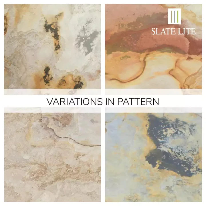 This stunning Falling Leaves Slate Veneer sheet has a 100% natural stone face specially manufactured with a resin and fibre glass backing to make it ultra thin, light weight and easy to install.