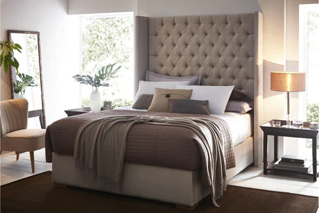 The Bed is handmade and upholstered in the beautiful Lined design. Providing you quality at an affordable price. Strong solid slatted base to provide longevity for your mattress and allowing you to enjoy a beautiful night's sleep. Handcrafted in the UK with the most luxurious fabric.