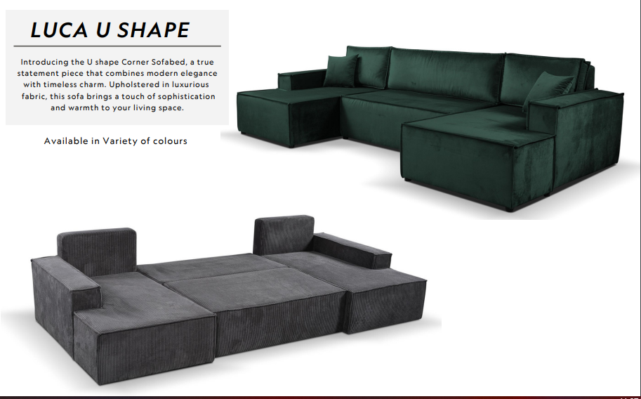 Introducing the U shape Corner Sofabed, a true statement piece that combines modern elegance with timeless charm. Upholstered in luxurious fabric, this sofa brings a touch of sophistication and warmth to your living space.