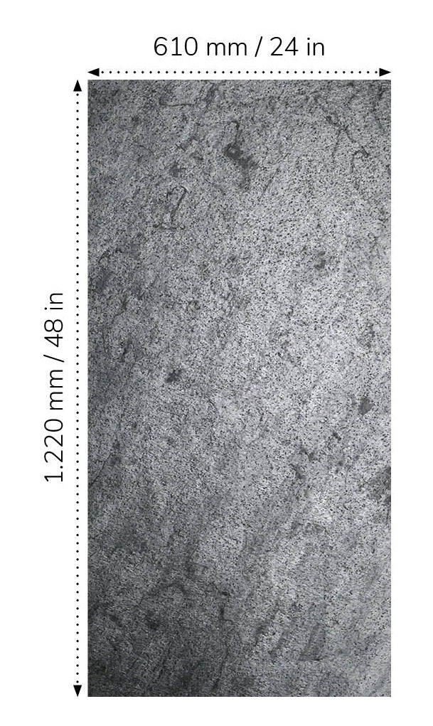 This stunning Silver Grey Slate Veneer sheet has a 100% natural stone face specially manufactured with a fibre glass and resin backing to make it flexible, light weight and easy to install.