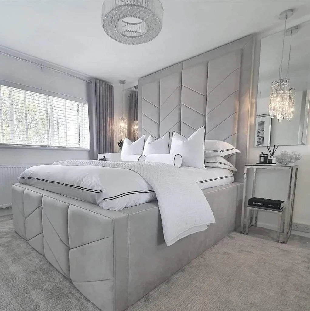 The Bed is handmade and upholstered in the beautiful Lined design. Providing you quality at an affordable price. Strong solid slatted base to provide longevity for your mattress and allowing you to enjoy a beautiful night's sleep. Handcrafted in the UK with the most luxurious fabric.